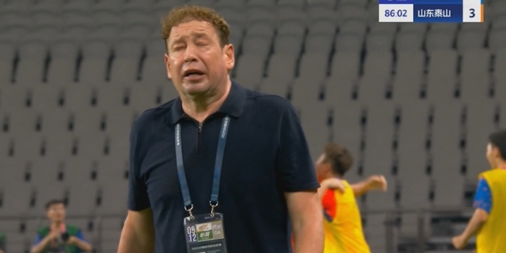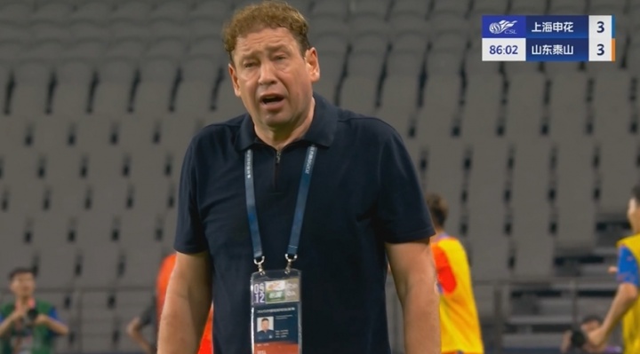 9月12日讯 中超第24轮,上海申花vs山东泰山。比赛第86分钟,申花后场送出大礼,卡扎伊什维利戴帽扳平,申花主帅斯卢茨基在场边神情激动,面露痛苦。